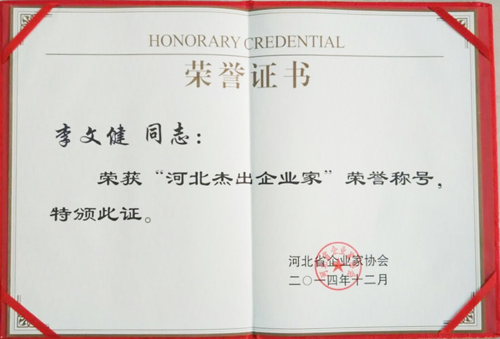 近日,由河北省企業(yè)家協(xié)會(huì)傳來消息,中太建設(shè)集團(tuán)名譽(yù)董事長李文健榮獲“河北杰出企業(yè)家”榮譽(yù)稱號(hào)。