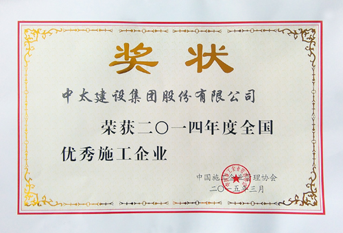 近日,由中國施工企業(yè)管理協(xié)會傳來喜訊,中太建設(shè)集團(tuán)被評為“2014年度全國優(yōu)秀施工企業(yè)”。