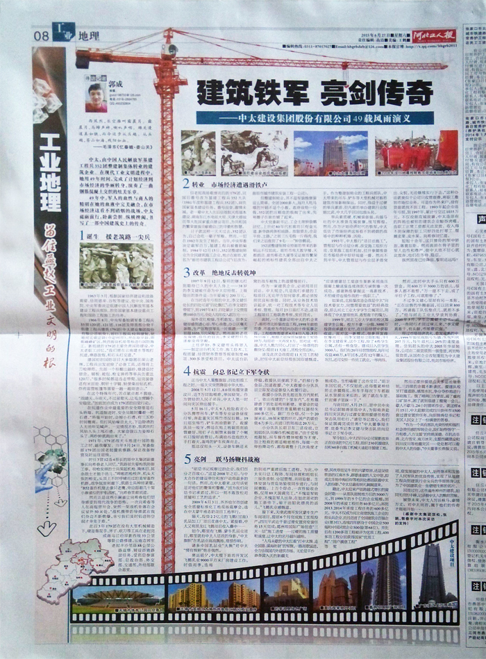 河北工人報以“建筑鐵軍亮劍傳奇”為題報道了中太建設集團49年發(fā)展歷程