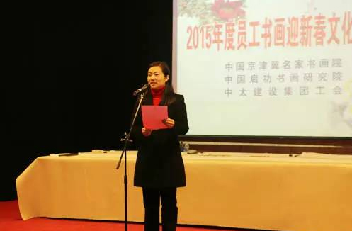 市文廣新局黨組書記李克儉、市總工會(huì)副主席王忠亮出席活動(dòng)并講話,中國(guó)京津冀名家書畫院秘書長(zhǎng)王志明、中太建設(shè)集團(tuán)工會(huì)主席、企業(yè)文化部總經(jīng)理張娟娟致辭。