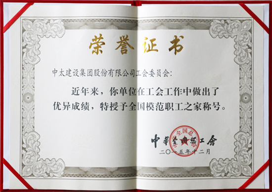 近日,由中華全國總工會傳來喜訊,集團公司工會被授予“全國模范職工之家”榮譽稱號。