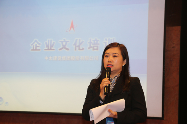 根據會議安排,中太建設集團工會主席、企業文化部總經理張娟娟圍繞企業文化基礎知識、執行力建設和中太文化標準等為參會人員帶來了一場精彩的企業文化培訓,倡導大家從落實中太基礎文化標準出發,將思想高度與企業發展保持一致,引導更多的人認知并認同中太特色“鐵軍”文化,發揚說一不二、雷厲風行的“鐵軍精神”,為中太科學、健康、可持續發展貢獻力量。