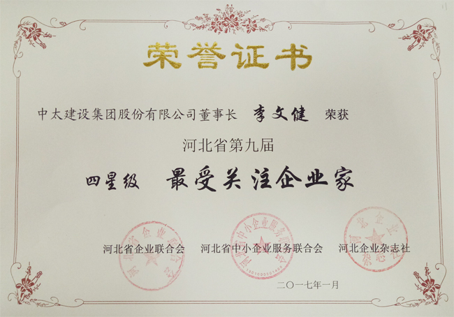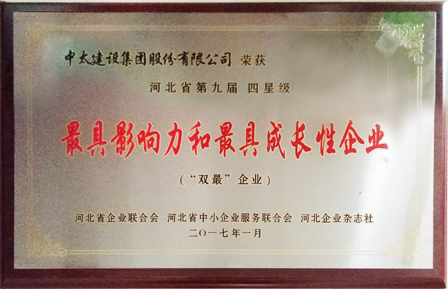 近日,河北省企業(yè)聯(lián)合會(huì)第六屆會(huì)員代表大會(huì)暨2017年河北省企業(yè)管理創(chuàng)新大會(huì)在石家莊召開(kāi),會(huì)議通報(bào)《河北省第九屆“最具影響力”“最具成長(zhǎng)性”“最受關(guān)注企業(yè)家”評(píng)審結(jié)果》。中太建設(shè)集團(tuán)獲評(píng)四星級(jí)“最具影響力和最具成長(zhǎng)性企業(yè)”(“雙最”企業(yè)),李文健主席被授予“最受關(guān)注企業(yè)家”稱號(hào)。