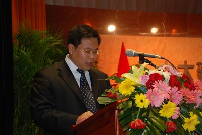 中太大廈二樓報告廳,鮮花吐艷,綠葉蔥蔥。“全面貫徹落實廣州年會精神,堅決完成09年任務目標”的大幅標語格外醒目。