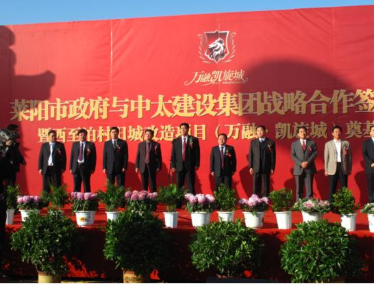 中太建設集團此次與萊陽合作開發建設的萬融凱旋城項目為舊村改造項目,計劃投資12億元,一期工程投資約3億元,建設總面積25萬平方米、總戶數2000戶的大型社區。該項目的合作,將為提升萊陽形象、擴大中太知名度增添新的亮點。