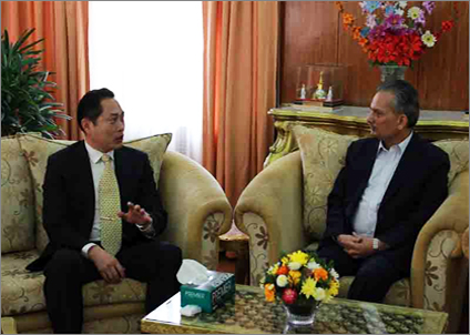 馬功云局長(左)拜訪尼泊爾總理,介紹中太建設(shè)集團(tuán)發(fā)展情況。