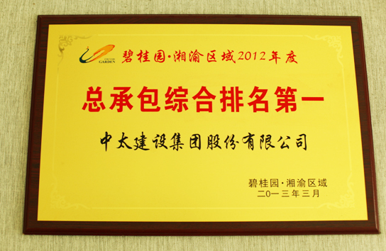 集團公司獲“碧桂園•湘渝區域2012年度總承包綜合排名第一”