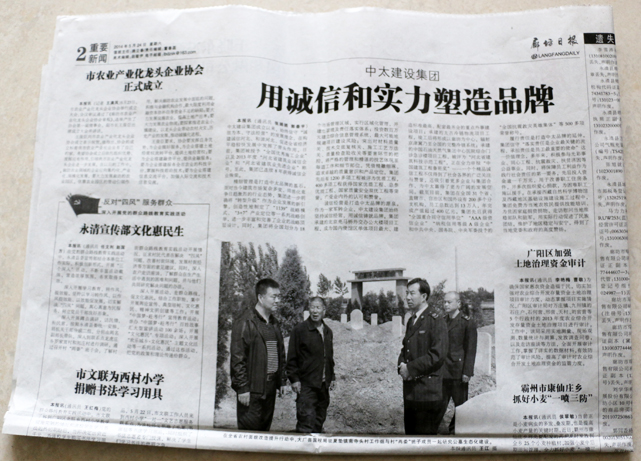 廊坊日報(bào)報(bào)道了中太建設(shè)集團(tuán)用誠信和實(shí)力塑造品牌