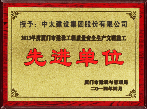 集團公司榮獲2013年度廈門市創(chuàng)建安全文明工地優(yōu)勝單位等榮譽