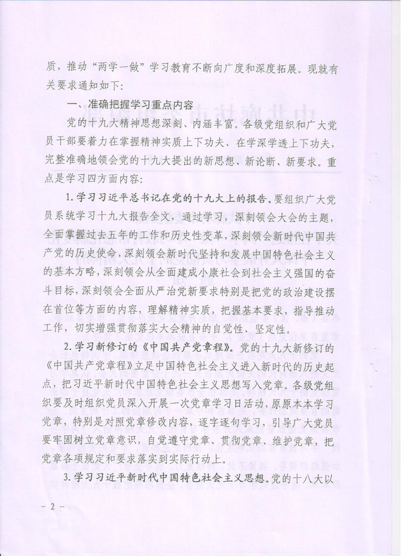 現(xiàn)將中共廊坊市委組織部《關于在推進“兩學一做”學習教育常態(tài)化制度化中深入開展學習貫徹黨的十九大精神的通知》轉發(fā)給你們。請認真按照通知要求,緊密聯(lián)系本單位實際,把深入開展學習貫徹十九大精神納入“兩學一做”學習教育常態(tài)化制度化,把十九大精神學深學透,全面把握十九大精神實質。